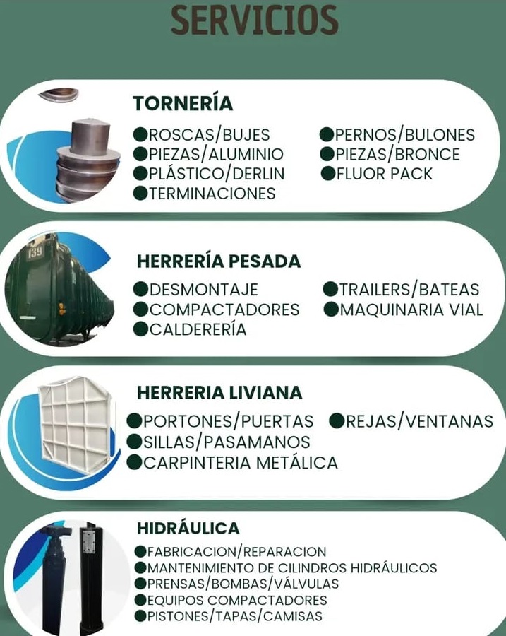 Somos una empresa dedicada al servicio y mantenimiento general de máquinas compactadoras, viales e hidráulicas. Además, realizamos trabajos de herrería pesada y liviana, calderería, tornería y pintura industrial.